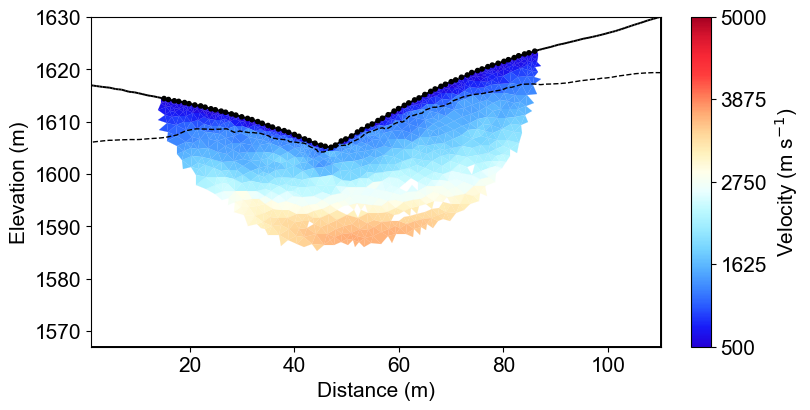 Ex. Seismic Refraction Tomography (SRT) Inversion and Interface Delineation