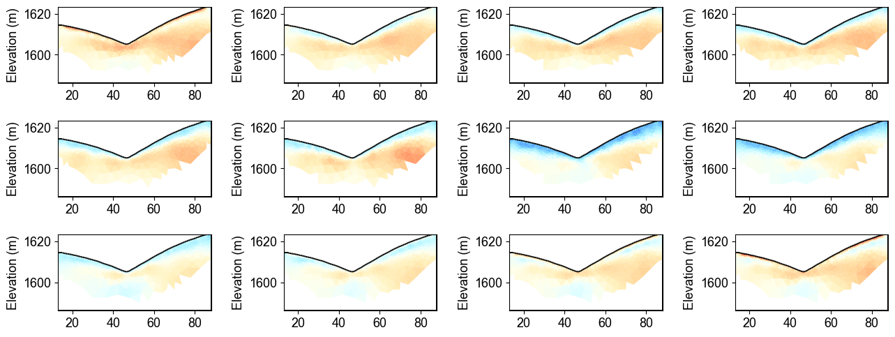 Ex_ERT_workflow.py: Workflow for integrating hydrological model outputs with ERT forward modeling and inversion